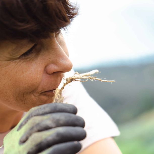 Nous nous fournissons également grâce à la cueillette sauvage, également certifiée BIO. Au printemps, nous récoltons les aspérules odorantes pour infuser notre Woodka bio. Après l’été, nous entretenons une tradition séculaire en allant creuser la gentiane, emblème de nos montagnes.