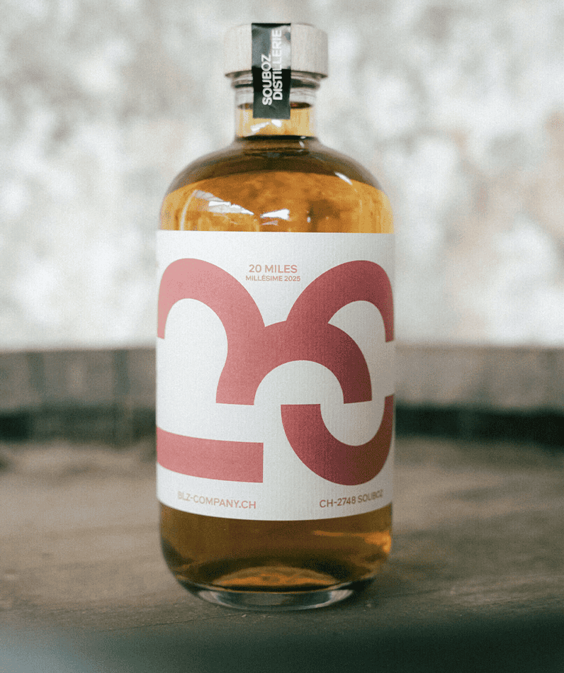 Né de la collaboration entre Souboz Distillerie et la brasserie BLZ, 20 Miles est un spiritueux inspiré du bourbon américain – mais repensé avec des ingrédients suisses et un savoir-faire artisanal made in Chasseral.